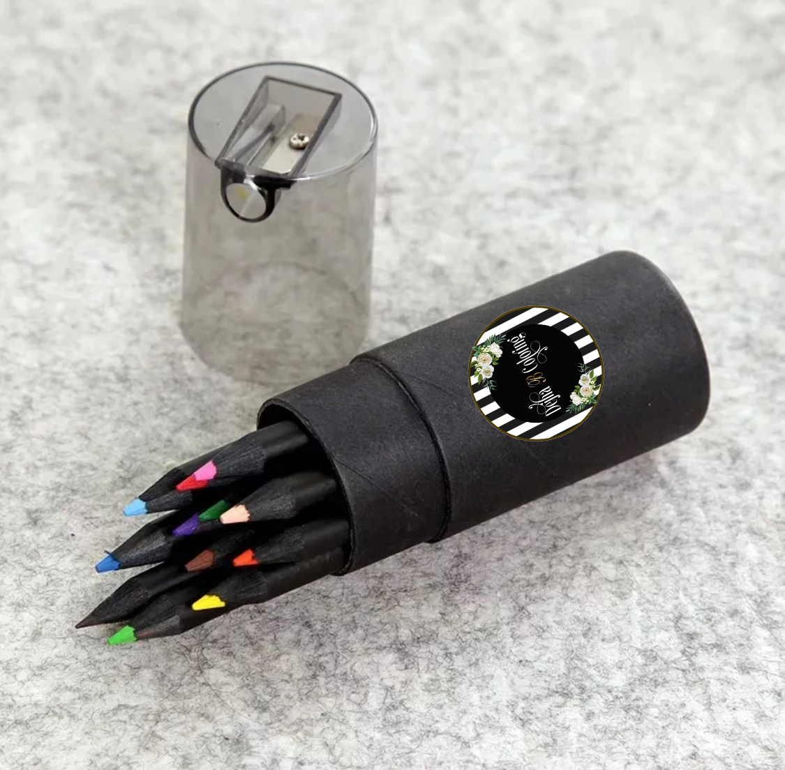 - 1x Mini Pencil Set (12 colored pencils, and sharpener top).