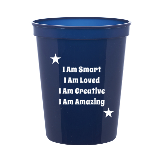 - 1x Positive Affirmation reusable, dishwasher safe stadium cup.