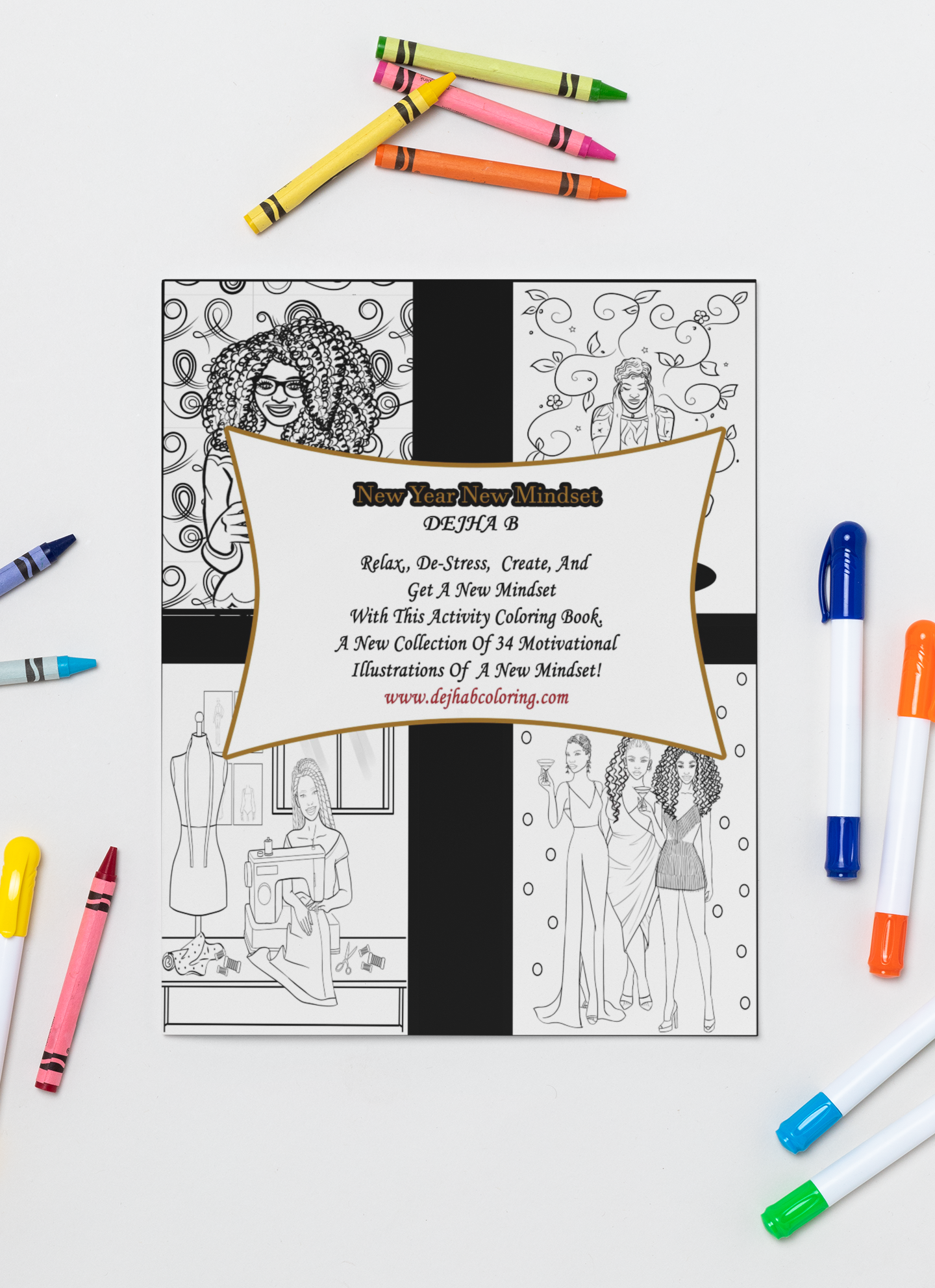 Relax, de-Stress, create, and get a new mindset with this activity adult coloring book. A new collection of 34 motivational illustrations of a new mindset! Each illustration is printed on one side and has an inspiration quote or activity to help create a new mindset for the new year.