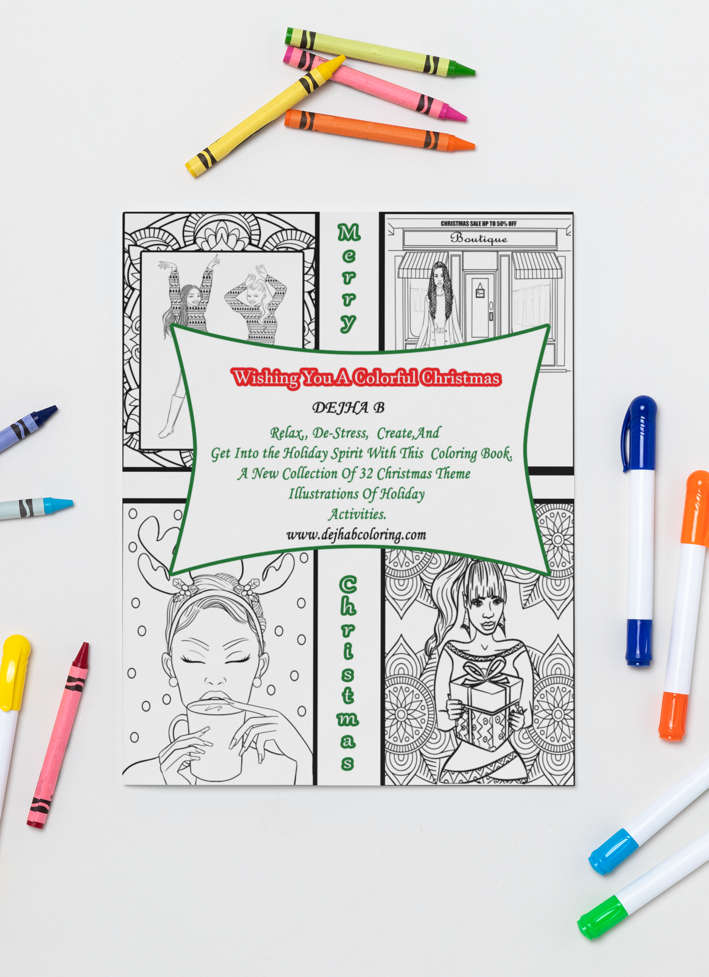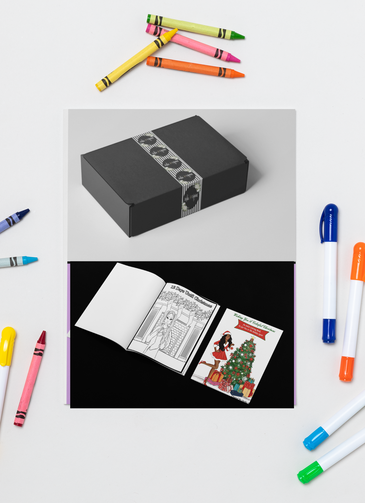 - 1x “Wishing You A Colorful Christmas” adult coloring book: New Collection Of 32 beautiful Illustrations to help you get in the holiday spirit
